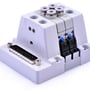 VALVOLE A SOLENOIDE INTEGRATO 3 VIE, 2 POSIZIONI. INGRESSI DELL'ARIA COMPRESSA, SCARICHI E SEGNALI ELETTRICI (D-Sub 25 pin) SONO CONCENTRATI ED INTEGRATI NELLA SOTTOBASE.
